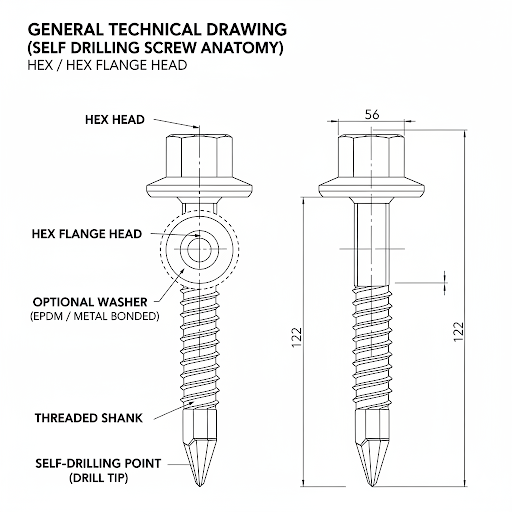 Drill Fix Self Drilling Screws are precision-engineered fastening solutions designed for metal roofing, cladding, and insulated panel systems. Manufactured from Carbon Steel C1022 and zinc plated for corrosion protection, these screws are developed to deliver controlled drilling performance and secure anchorage without the need for pre-drilling.